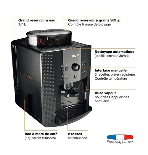 Fabricado en la fábrica de Mayenne en Francia, benefíciese de una calidad impecable, gracias a las pruebas e inspecciones de las máquinas KRUPS en cada etapa de producción.