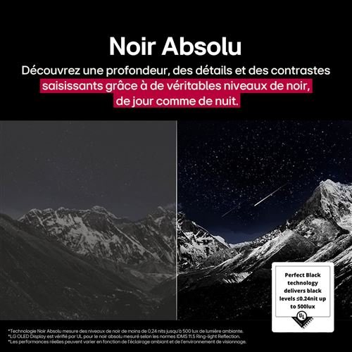Los televisores LG OLED evo 2025 cuentan con la certificación UL «Perfect Black». Esto significa que nuestros televisores muestran un negro absoluto, realzando los colores que componen la imagen para un contraste infinito, tanto de día como de noche. De hecho, los millones de píxeles autoemisores que componen los televisores LG OLED pueden apagarse por completo para crear el negro.